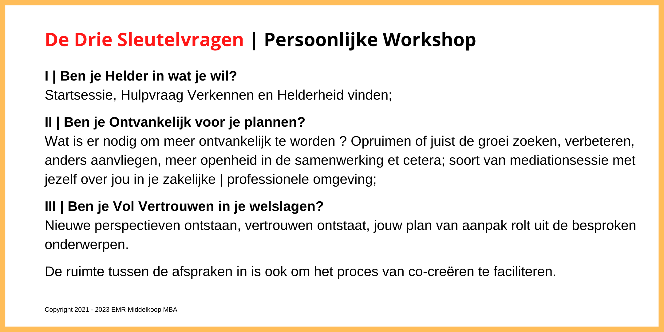 Persoonlijke Workshop De Drie Sleutelvragen